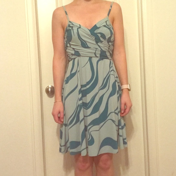 Express dress, falls just above the knee. 95% polyester, 5% spandex. Comfortable and flattering. 20% off of a 3+ item bundle!