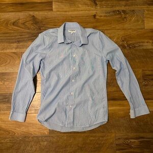 Light blue button down dress shirt from Express with a really small floral pattern. Can be used as a casual shirt or dressed up with a tie. It is a size large with the fit being extra slim. Neck is 16-16.5.