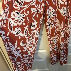 Chic pants with a terracotta and white design. Perfect for a bold look. Very stretchy and 95% polyester. NWT with pockets!!