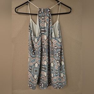 Express Patterned Spaghetti Strap Top - Blue, White, Cream