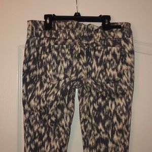These are super cute patterned pants from Express. They’re cream and navy colored; there are two back functional pockets and two functional front pockets. They look great with nude shoes, and a cute top for a business casual look!
