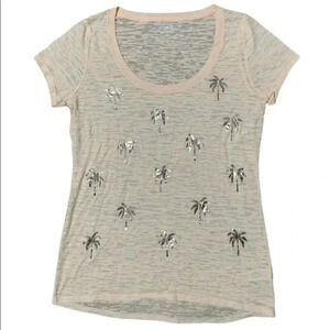 Express Peach Burnout Metallic Silver Palm Trees Sheer T-Shirt Women Size M