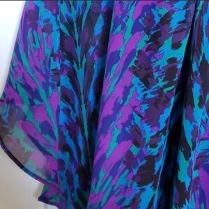 Express Peacock style blouse/tunic. Beautiful colors! Sheer outside fabric with a black liner. Size Small, Gorgeous.