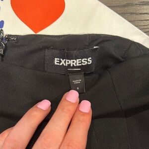 Chic black skirt by Express. Perfect for any occasion. Back slit and seams as shown. Lined as well.