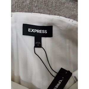 Express Pencil Skirt Womens 4 Cream White Striped Back Zipper Slit Lined NEW