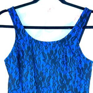 Express Peplum Top Womens XS Blue Sleeveless Lace Floral Print Tank Back Zip