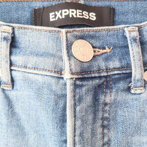Express Perfect Stretch Denim Cropped High Rise Frayed Hem Ankle Flare Jeans