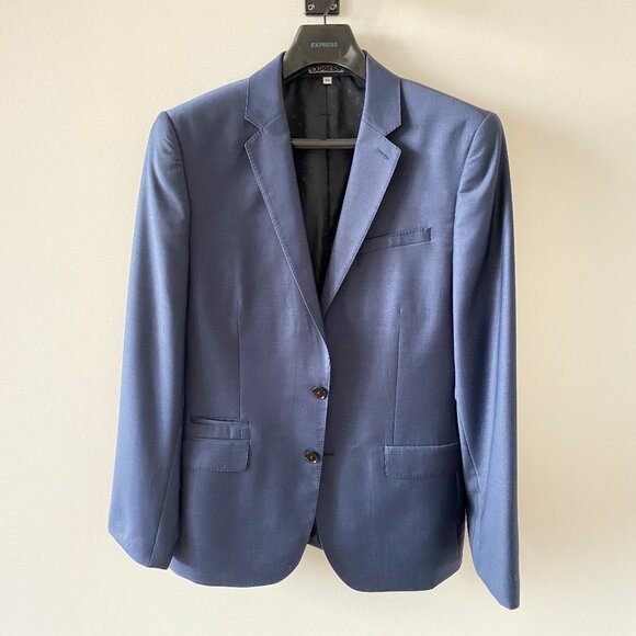 This premium Express Photographer suit in timeless navy blue is perfect for professional settings, interviews, weddings, or any formal occasion. The Photographer collection represents Express's higher-end suit line, featuring superior construction and material quality.