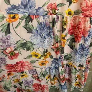Brand new with tags, smoke and pet free home. No flaws at all. THIS IS SO PRETTY! Bright and beautiful floral flower pattern to wear anywhere in the Spring and Summer. V neck design with straps that tie at the top. Tiered bottom hem. Sold out online. Perfect for Easter or a Summer wedding guest dress. Lined and has a rear zipper. 100% Polyester. Flowy, lightweight and elegant.