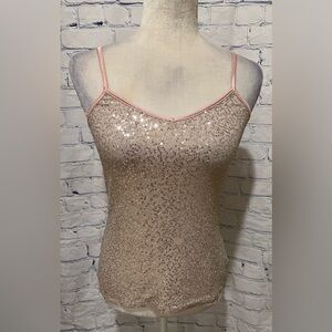 Express Pink Glitter Sequin Tank Top With Adjustable Straps Size Small