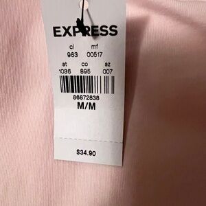 Express Pink Peplum Top With Sweetheart Lace Neckline And Lace 3/4 Sleeves Size Medium NWT. Unused/unworn pristine condition. This soft stretchy top with sweetest of necklines trimmed in lace, open back, and lace 3/4 length sleeves is punctuated with a flouncy peplum to create a curve-skimming fit. This top is effortlessly pretty for anywhere and everywhere.