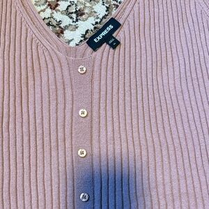 Soft ribbed knit camisole by Express. V-neck with thin straps. Button-front detail. Stretchy hem for a snug fit. Versatile for layering or wearing alone. Excellent condition, reposhing because it didn’t fit.