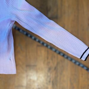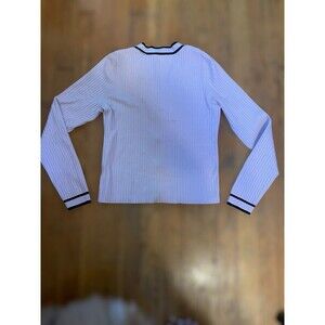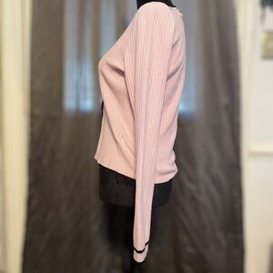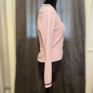 Express Pink Ribbed V-Neck Cardigan Black Trim Gold Buttons Classic Elegant Med
