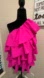 Stylish one-shoulder top with layered ruffles. Vibrant pink color. Perfect for a chic look.