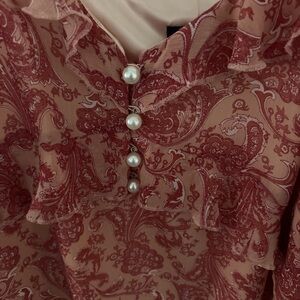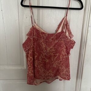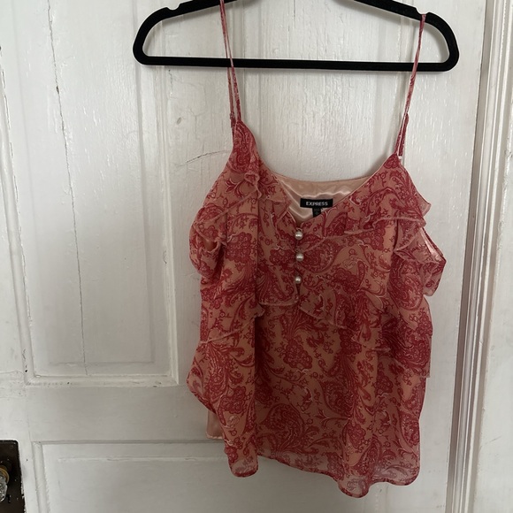 Pink XL tank top blouse from Express with a paisley design and pearl details. Never worn, original tag still intact.