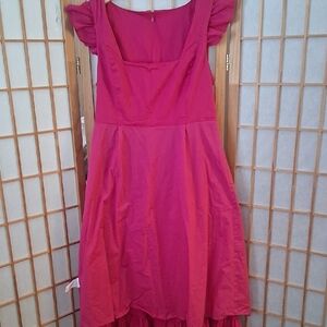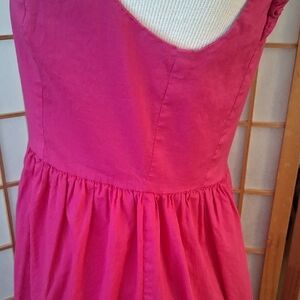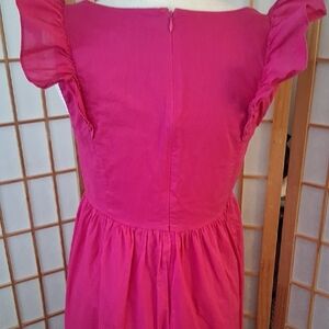 Adorable pink dress with ruffled sleeves. Perfect for casual outings. Comfortable and stylish.