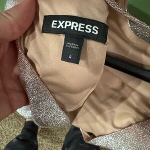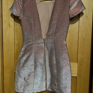 This stunning mini dress from Express features a captivating pink hue with a metallic sheen, perfect for cocktail occasions. The dress is designed with a crew neck and short sleeves, offering a sleek and sophisticated silhouette. Its tailored sheath style ensures a flattering fit, making it a standout choice for any evening event.