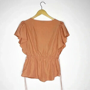 Express Pink Short Sleeve Peplum Blouse Tie Side Size Small