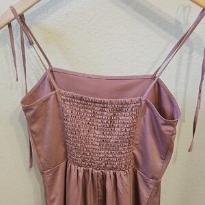 This elegant pink mini dress by Express is perfect for weddings or cocktail events, featuring a sleeveless design with a square neckline. The sundress style offers a flattering fit with a flared skirt, making it a stylish choice for any special occasion.