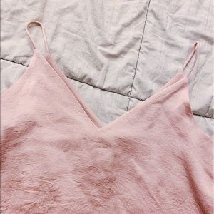 Basic pink v-neck tank, perfect to pair under a blazer or any business casual fit. Double lined and only worn a few times. 100% polyester. Fits S-M.