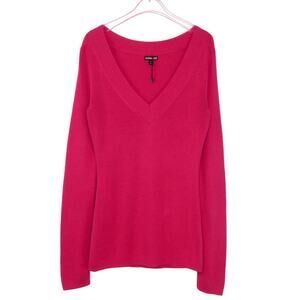 Express Pink V-Neck Sweater Classic Knit Hot Pink Barbie Style Cozycore Medium