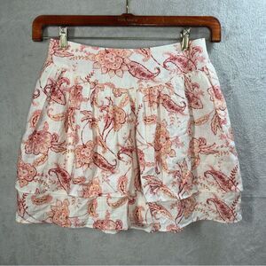 Express Pink Ivory Linen Blend Floral Tiered Ruffle Mini Skirt Size 6 New