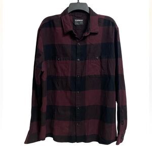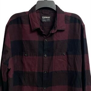 Express Plaid Flannel Shirt Men's Size XXL Button Down Pockets Burgundy Black