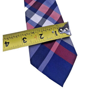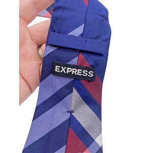 Express Plaid Tie 100% Silk Blue White Red Preppy Wedding Guest Corpcore Coastal