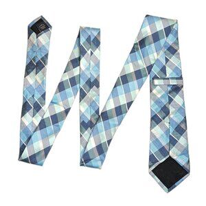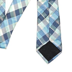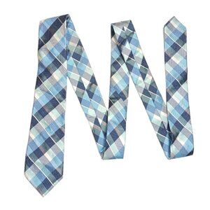 Express Plaid Tie Men’s 62” Blue Green Silk Cotton Blend Designer Classic New