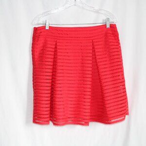 Express Pleated Flair Mini Skirt Bright Red Textured Elastic High Waist Size 12