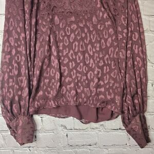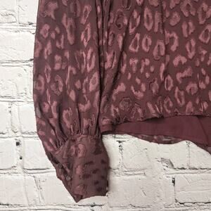 Express Plum Burgundy Sheer Cheetah Leopard Animal Print Blouse Size Large