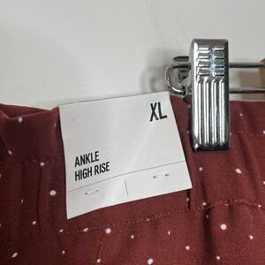 Express Polka Dot Ankle High Rise Pants Rust Womens XL Paperbag Elastic Waist
