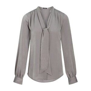 Express Portofina Brown Tie-Neck Blouse With Long Sleeves & Button Cuffs For Wo