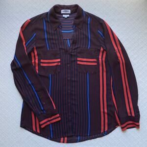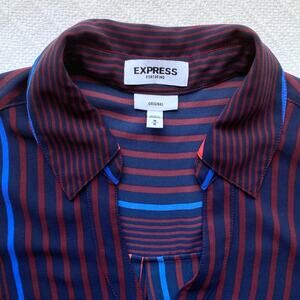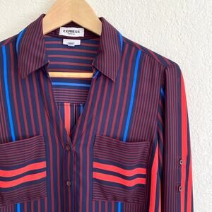 Express Portofino Blouse Striped Navy Red Cobalt Button Up Top Business Casual