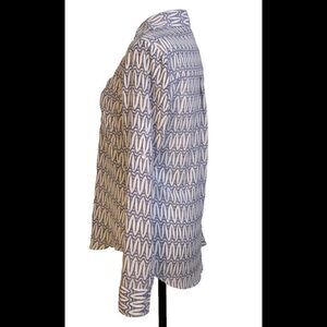 Express Portofino Eiffel Tower Print Blouse White Blue XS Roll Tab Sleeve