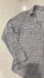 Stylish sheer gray blouse with a geometric pattern. Features a button-up front and long sleeves. Perfect for casual or office wear.