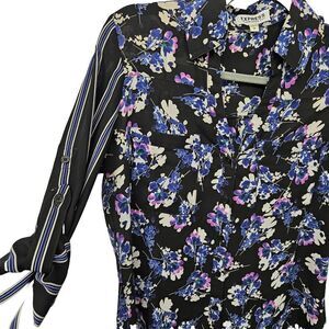 Express Portofino Floral Striped Shirt Blouse Top S Roll Tab *FLAW