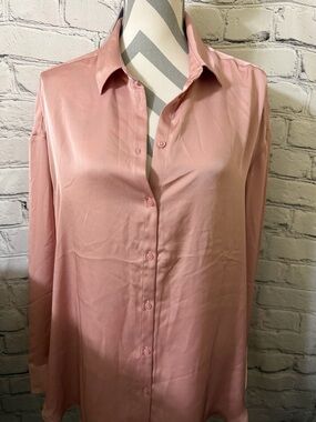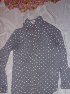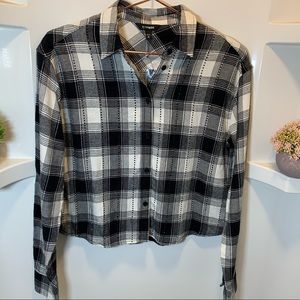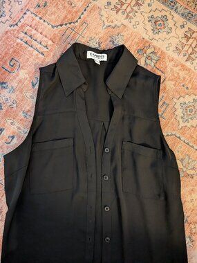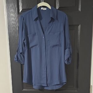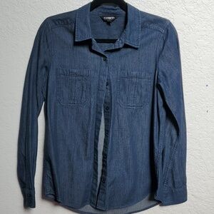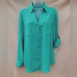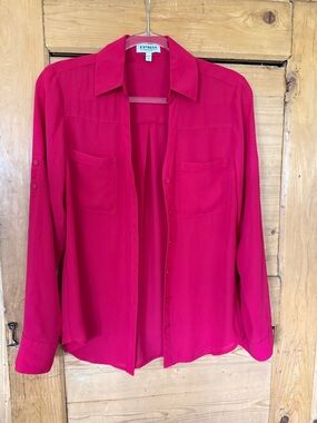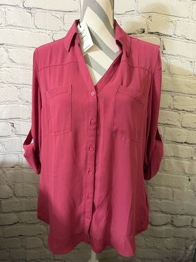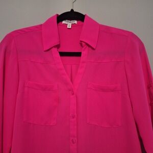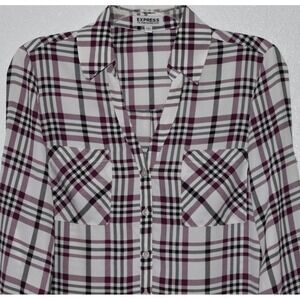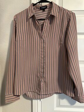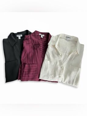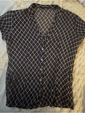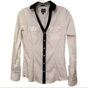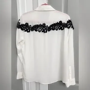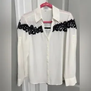 Express Portofino Ivory Button-Down Blouse with Black Lace Detail Size Medium