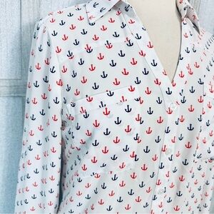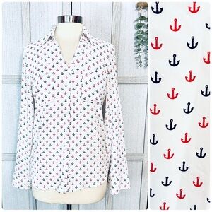 Express Portofino Shirt Nautical Anchor Print Button Front Blouse Size Small