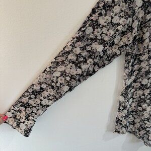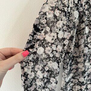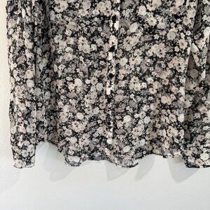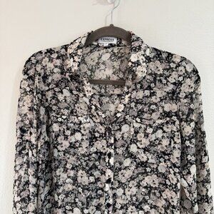 Express Portofino Shirt S Button Front Black White Floral Chiffon Long Sleeve
