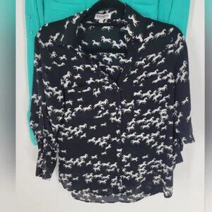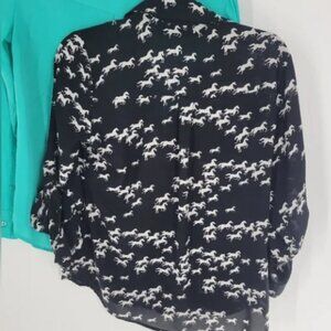 Express Portofino Shirt Size S Mint Floral Button Up Blouse (lot of 2)