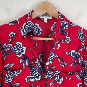 Express Portofino Shirt Slim Fit Womens Small Floral Roll Tab Sleeve Blouse Top