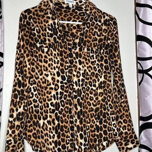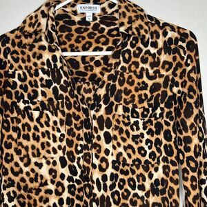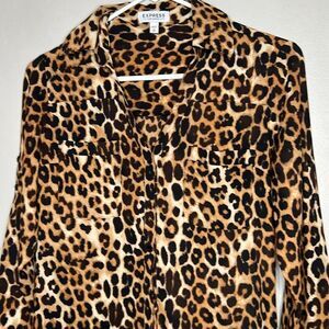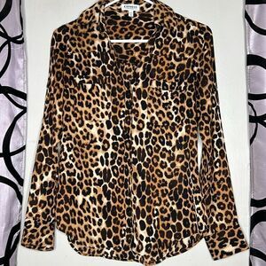 Express Portofino Shirt. Button front style with long sleeves. Cheetah print. 100% polyester. Size XS.