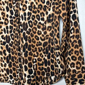 Express Portofino Shirt Top Blouse-Long Sleeve-Cheetah Print-XS