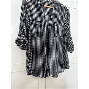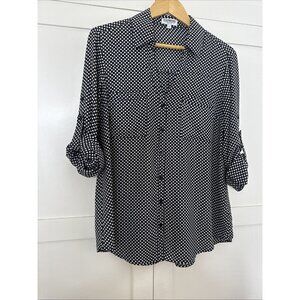 Express Portofino Shirt Women Small Black White Dot Original Fit Flowy Career L