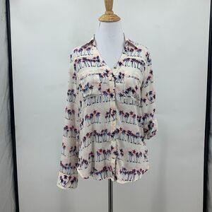 Express Portofino Shirt Women XS Multi Palm Tree Print Roll Tab Sleeve Button Up