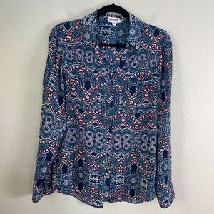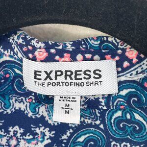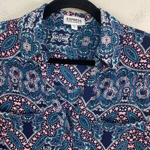 Express Portofino Shirt Womens Medium Paisley Roll Tab Sleeve Blouse Top