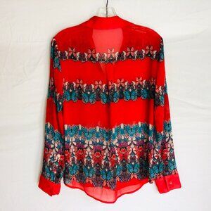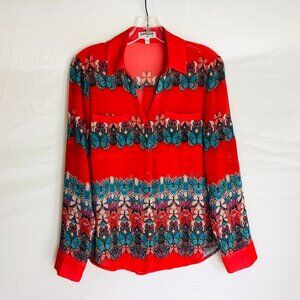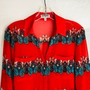 Express Portofino Shirt Women's Size Small Button Up Butterfly Print Blouse Top