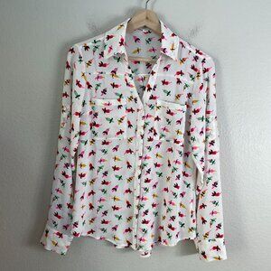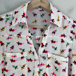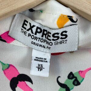 Express Portofino Shirt Womens XS Mustache Chilies Chilipepper Roll Tab Sleeve