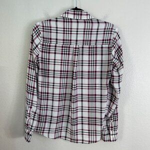 Express Portofino Shirt Womens XS Plaid Button Up Blouse Roll Tab Sleeve Top